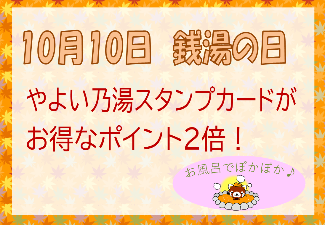 10月10日(金)銭湯の日はスタンプカードポイント2倍!
